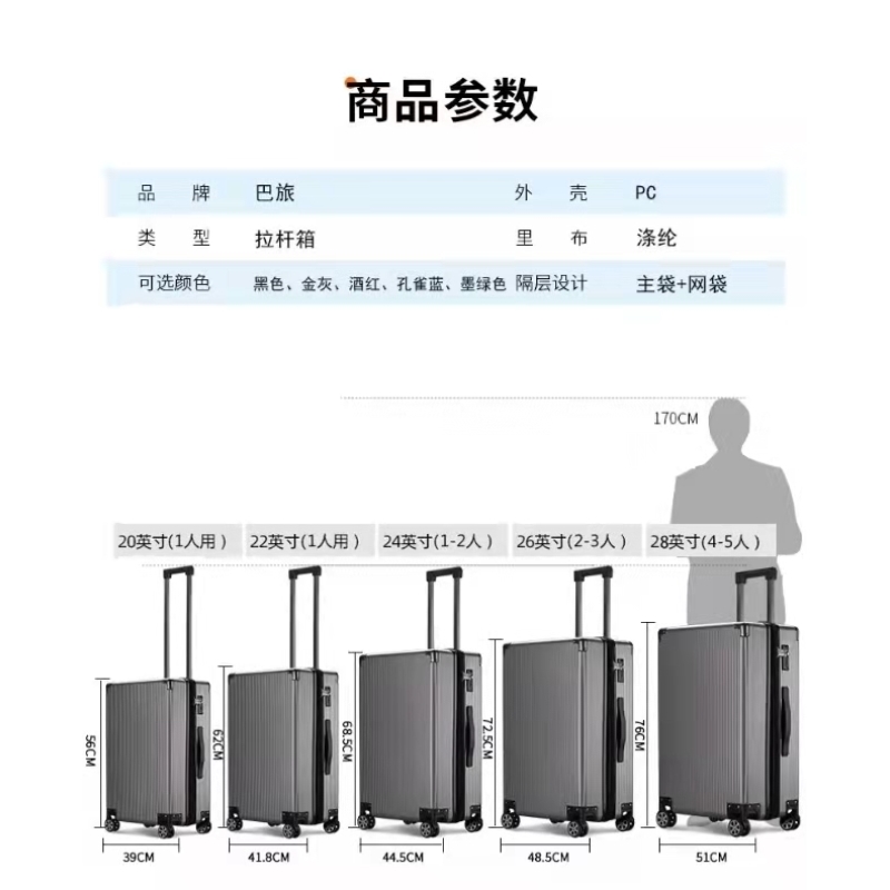 巴旅多色行李箱20寸拉桿箱22寸、24寸26寸拉桿箱 飛機登機箱靜音萬向輪PC材質(zhì)